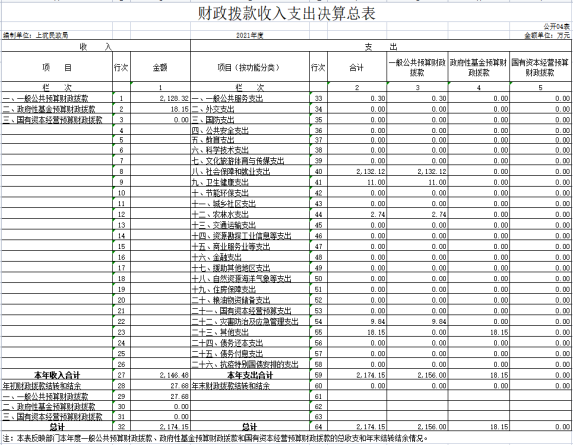 一、財政撥款收入:指單位本年度從本級財政部門取得的財政撥款,包括一般公共預(yù)算財政撥款和政府性基金預(yù)算財政撥款。
