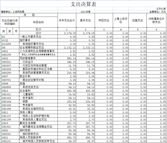 納入本套部門決算匯編范圍的單位共4個,包括:上猶縣民政局、上猶縣民政事務(wù)中心、上猶縣養(yǎng)老服務(wù)中心、上猶縣殯葬管理所;上猶縣民政局本級有4個內(nèi)設(shè)機構(gòu),分別是社會事務(wù)股,社會救助股 ,養(yǎng)老服務(wù)股 ,殯葬管理所。
