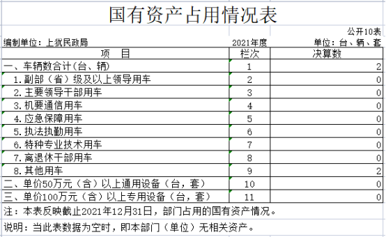 截止2021年12月31日,本部門(單位)國有資產(chǎn)占用情況見公開10表《國有資產(chǎn)占用情況表》。其中車輛中的其他用車主要是敬老院、流浪乞討救助用車。
