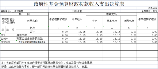 八、政府性基金預(yù)算財政撥款收入支出決算表