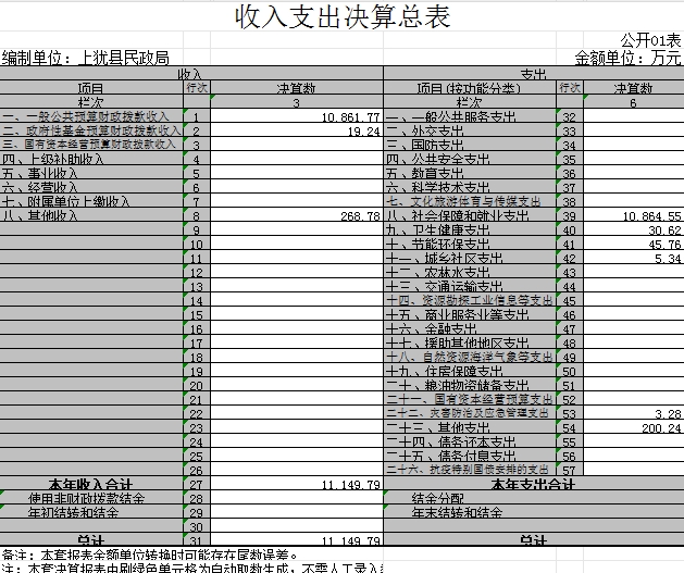 本部門2022年度收入總計(jì)11149.79萬(wàn)元,其中年初結(jié)轉(zhuǎn)和結(jié)余0萬(wàn)元,較2021年增加8975.64萬(wàn)元,增長(zhǎng)412.83%;本年收入合計(jì)11149.79萬(wàn)元,較2021年增加9003.31萬(wàn)元,增長(zhǎng)419.45%,主要原因是:到人到戶的民政民生資金劃歸為由上猶縣民政局發(fā)放。