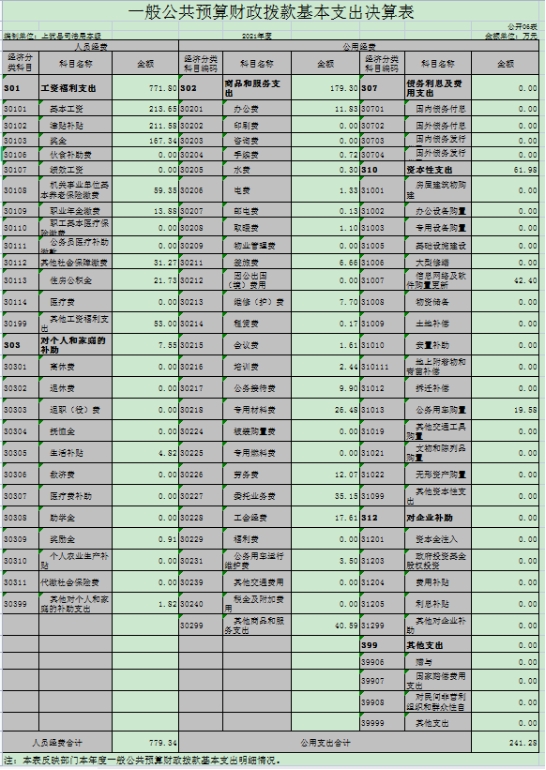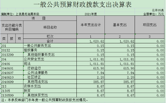 上猶縣司法局本級2021年度一般公共預(yù)算財政撥款基本支出1020.62萬元,其中: