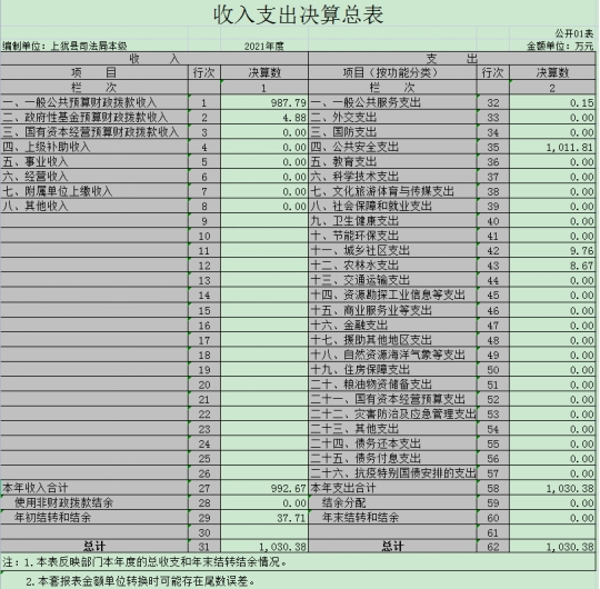 納入本套部門決算匯編范圍的單位共1個,包括:上猶縣司法局;本單位有0個內(nèi)設(shè)機(jī)構(gòu)。