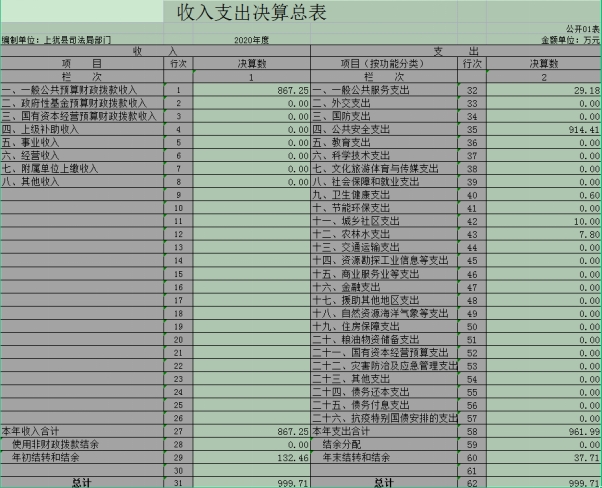 上猶縣司法局2020年度部門(mén)決算公開(kāi)數(shù)據(jù)