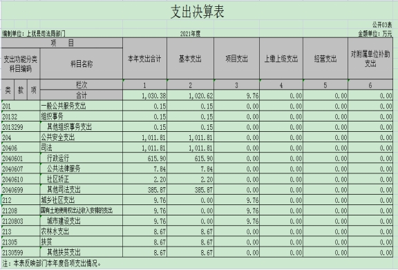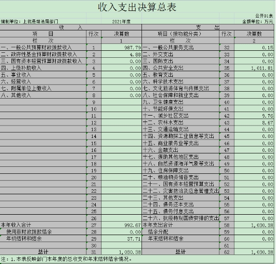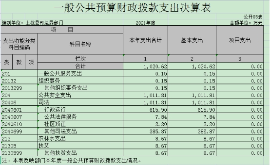 納入本套部門決算匯編范圍的單位共1個(gè),包括:上猶縣司法局; 上猶縣司法局有7個(gè)內(nèi)設(shè)機(jī)構(gòu),分別是人事秘書股、普法與依法治理股、法律事務(wù)股、行政應(yīng)訴和執(zhí)法監(jiān)督股、人民參與和促進(jìn)法治股、公共法律服務(wù)管理股、社區(qū)矯正管理股。