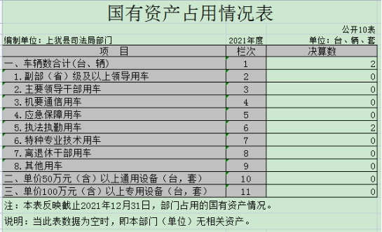 截止2021年12月31日,本部門(單位)國(guó)有資產(chǎn)占用情況見公開10表《國(guó)有資產(chǎn)占用情況表》。本部門共有車輛2輛,其中,副部(?。┘?jí)及以上領(lǐng)導(dǎo)用車0輛、主要領(lǐng)導(dǎo)干部用車0輛、機(jī)要通信用車0輛、應(yīng)急保障用車0輛、執(zhí)法執(zhí)勤用車2輛、特種專業(yè)技術(shù)用車0輛、其他用車0輛;單位價(jià)值50萬(wàn)元以上通用設(shè)備0臺(tái)(套);單位價(jià)值100萬(wàn)元以上專用設(shè)備0臺(tái)(套)。