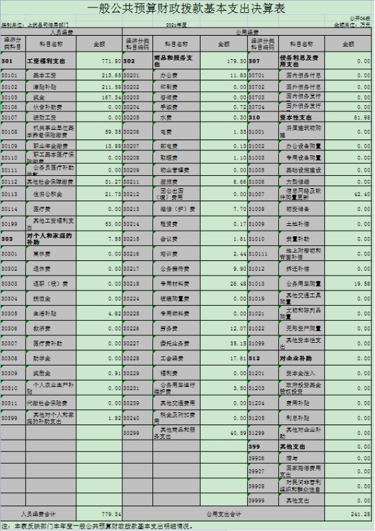 本部門2021年度一般公共預(yù)算財(cái)政撥款基本支出1020.62萬(wàn)元,其中: