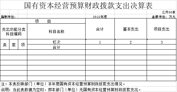 八、國(guó)有資本經(jīng)營(yíng)預(yù)算財(cái)政撥款支出決算表