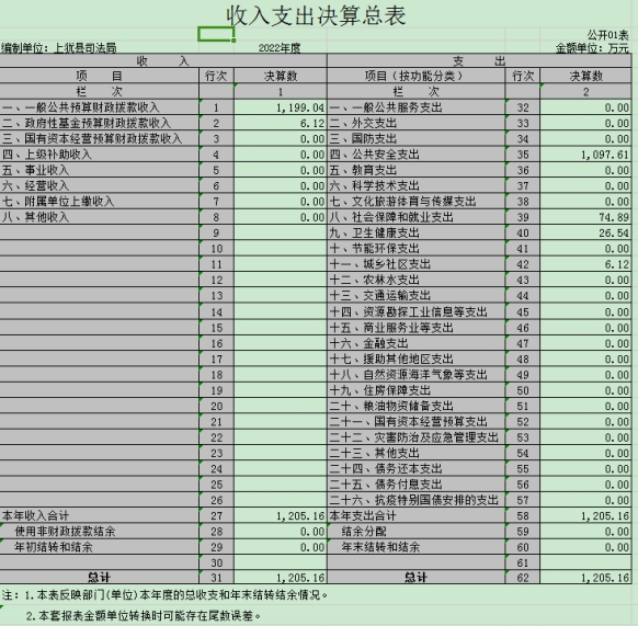 上猶縣司法局2022年度部門決算
