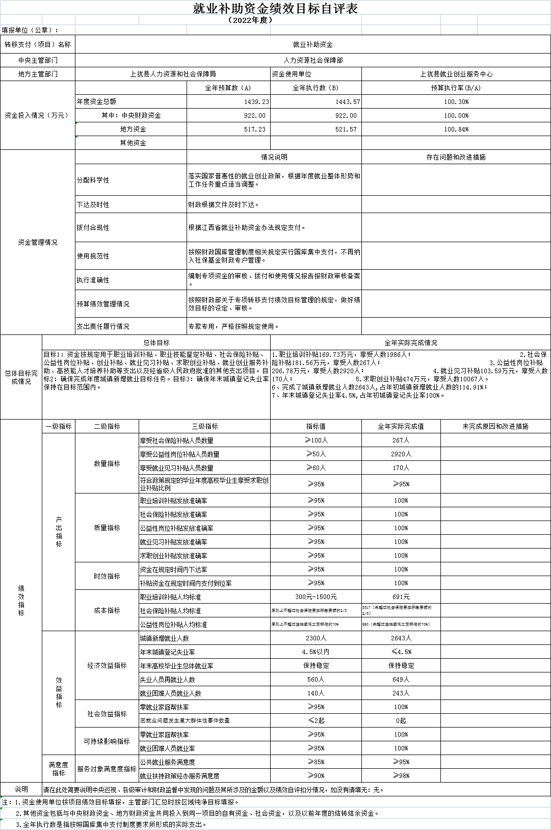 上猶縣就業(yè)補(bǔ)助資金2022年度績效自評報告