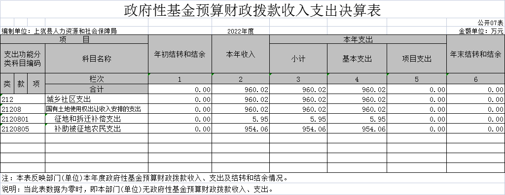 七、政府性基金預(yù)算財政撥款收入支出決算表