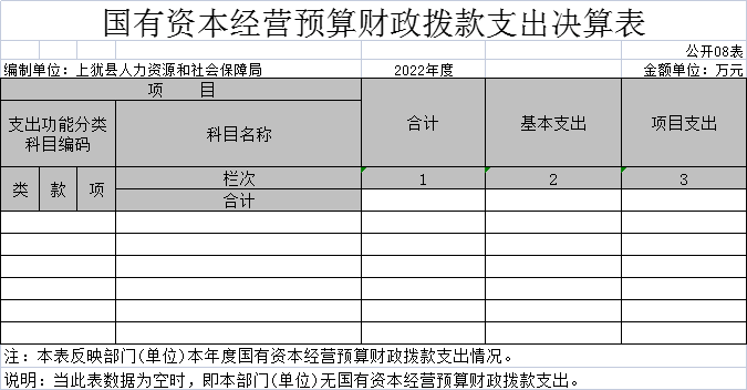八、國有資本經(jīng)營預(yù)算財政撥款支出決算表