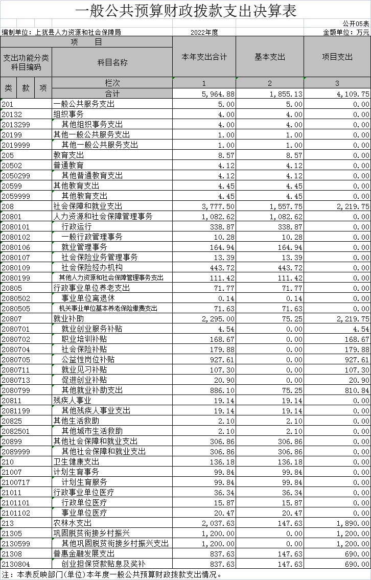 納入本套部門決算匯編范圍的單位共 3個,包括:上猶縣人力資源和社會保障局本級、上猶縣社會保險服務(wù)中心、上猶縣就業(yè)創(chuàng)業(yè)服務(wù)中心。