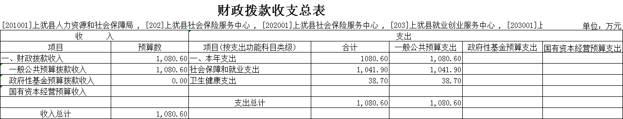 2024年上猶縣人力資源和社會保障局財政撥款支出預算總額為1080.6萬元,較上年預算安排減少318.1萬元,主要原因為年初未安排農(nóng)林水支出。