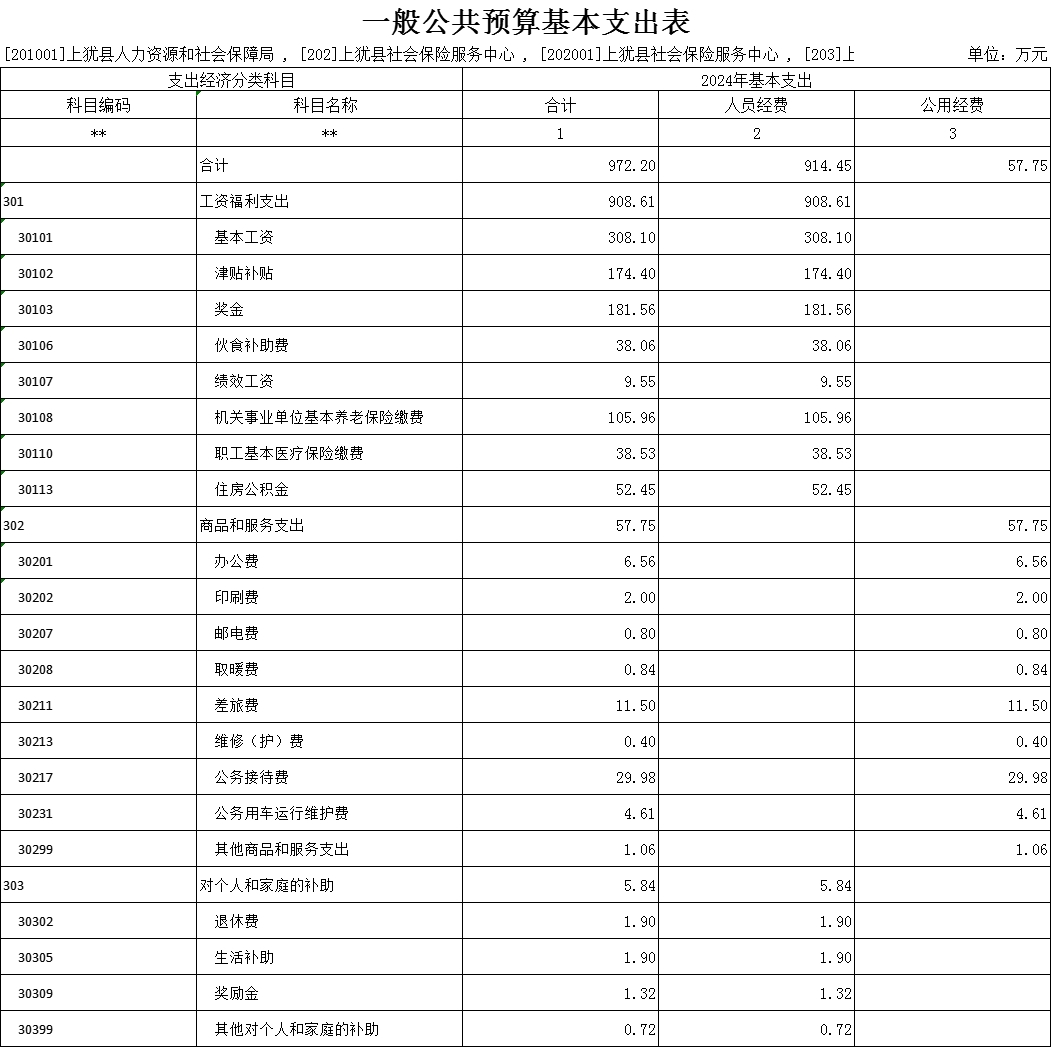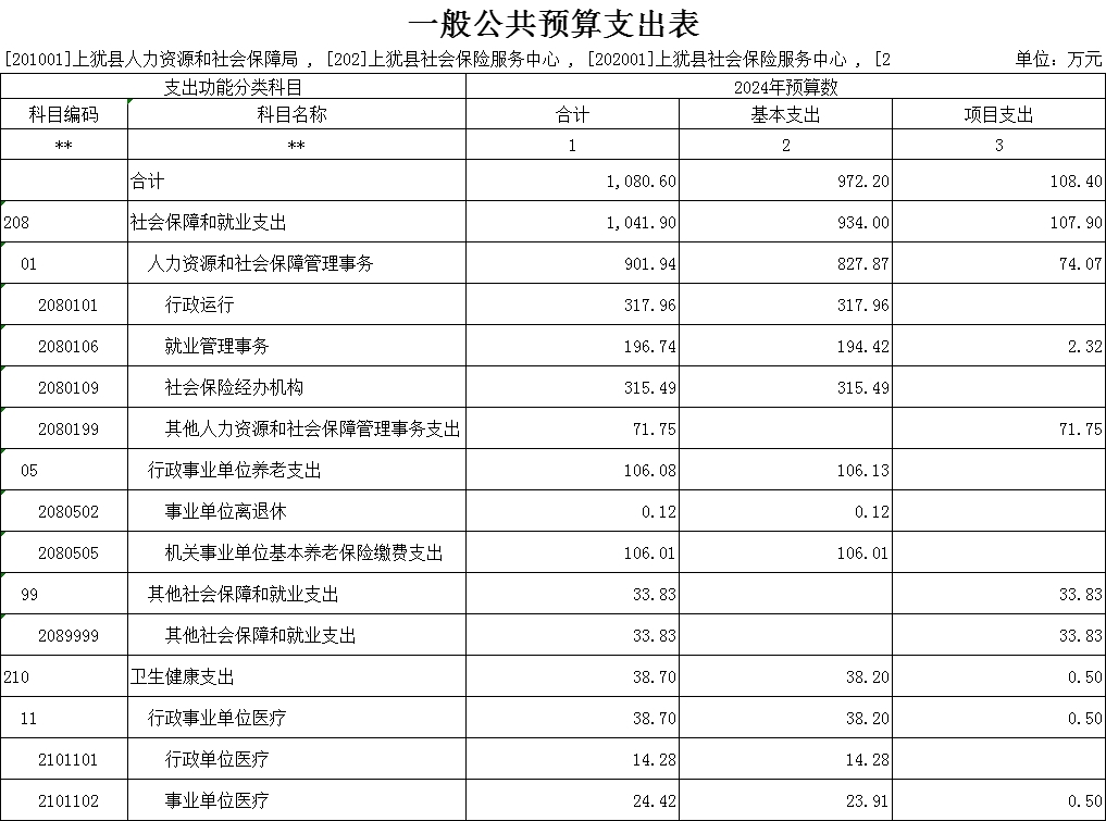 上猶縣人力資源和社會保障部門2024年部門預算公開