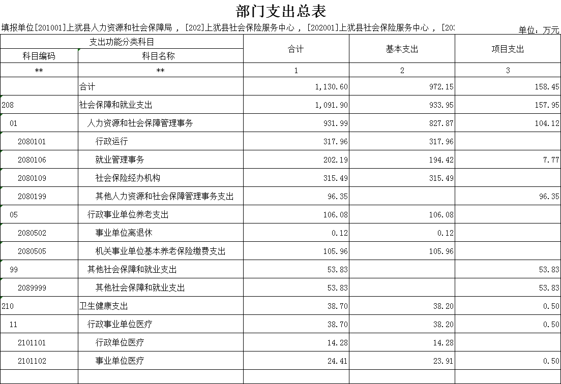 按支出功能科目劃分:社會保障和就業(yè)支出1091.9萬元,較上年預算安排減少477.76萬元;衛(wèi)生健康支出38.7萬元。