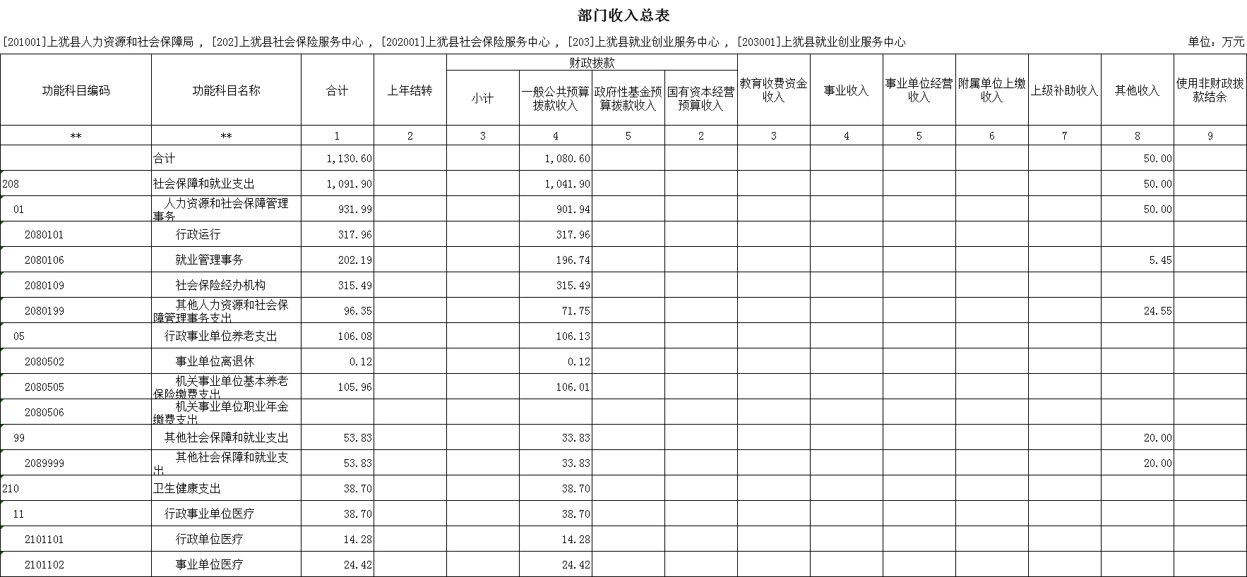 二、《部門收入總表》
