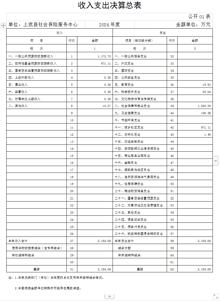上猶縣社會(huì)保險(xiǎn)服務(wù)中心2024年度單位決算