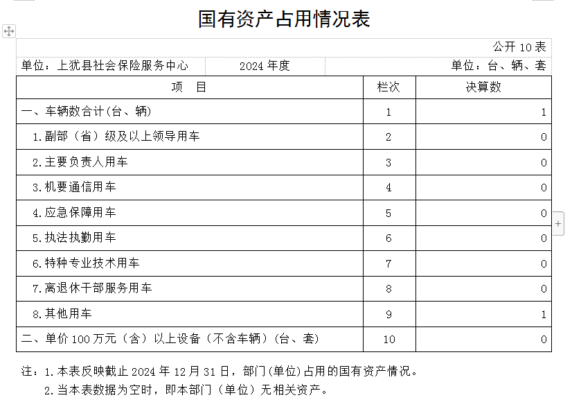 截止2024年12月31日,本單位共有車(chē)輛1輛(臺(tái)),其中:副部(省)級(jí)及以上領(lǐng)導(dǎo)用車(chē)0輛、主要負(fù)責(zé)人用車(chē)0輛、機(jī)要通信用車(chē)0輛、應(yīng)急保障用車(chē)0輛、執(zhí)法執(zhí)勤用車(chē)0輛、特種專業(yè)技術(shù)用車(chē)0輛、離退休干部服務(wù)用車(chē)0輛、其他用車(chē)1輛,其他用車(chē)主要是用于(此處請(qǐng)補(bǔ)充內(nèi)容)。本單位單價(jià)100萬(wàn)元(含)以上設(shè)備(不含車(chē)輛)0臺(tái)(套)。