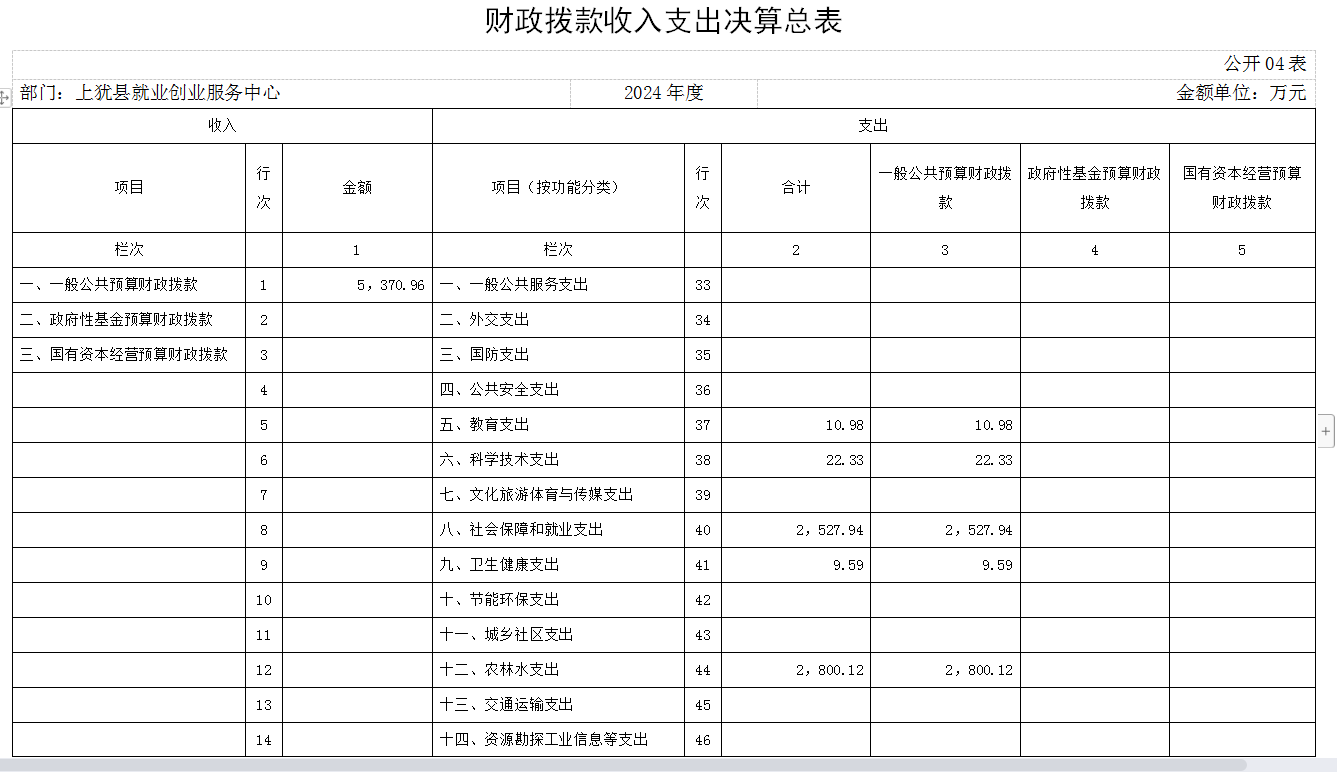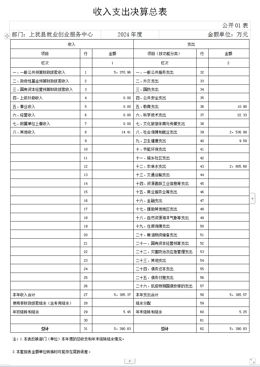 上猶縣就業(yè)創(chuàng)業(yè)服務(wù)中心2024年度部門決算