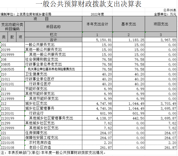上猶縣住房和城鄉(xiāng)建設(shè)局2022年度部門決算