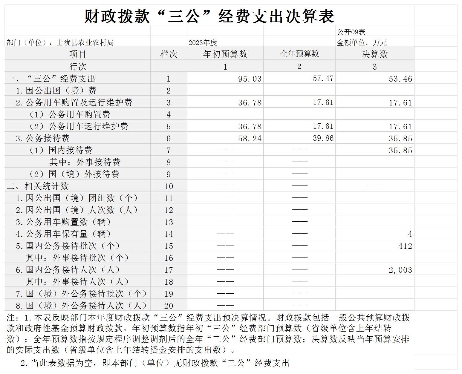 (一)“三公”經(jīng)費:是指用財政撥款安排的因公出國(境)費、公務用車購置及運行維護費和公務接待費。其中,因公出國(境)費反映單位公務出國(境)的國際旅費、國外城市間交通費、住宿費、伙食費、培訓費、公雜費等支出;公務用車購置及運行維護費反映單位公務用車車輛購置支出(含車輛購置稅、牌照費),按規(guī)定保留的公務用車燃料費、維修費、過橋過路費、保險費、安全獎勵費用等支出;公務接待費反映單位按規(guī)定開支的各類公務接待(含外賓接待)支出。