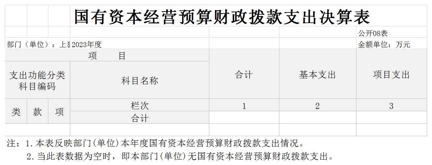 八、國有資本經(jīng)營預算財政撥款支出決算表