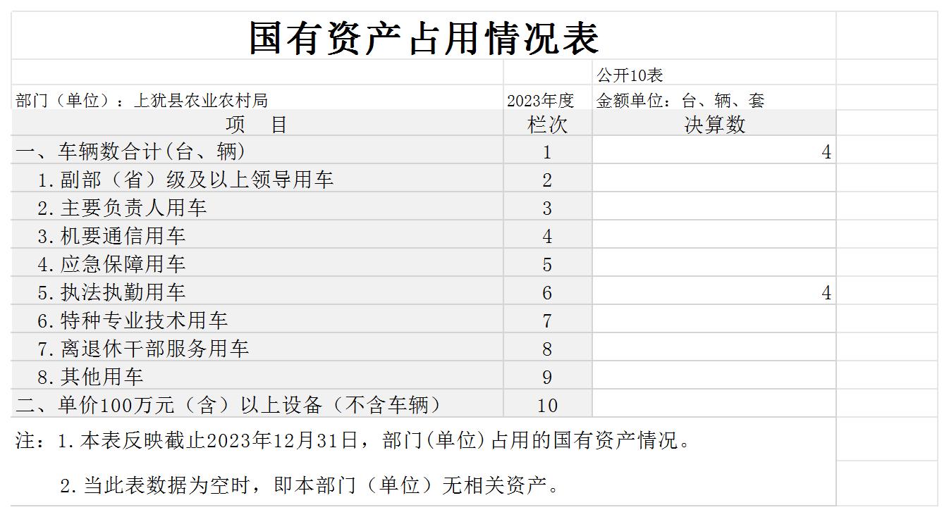 截止2023年12月31日,本部門共有車輛4輛(臺),其中:副部(省)級及以上領(lǐng)導用車0輛、主要負責人用車0輛、機要通信用車0輛、應急保障用車0輛、執(zhí)法執(zhí)勤用車4輛、特種專業(yè)技術(shù)用車0輛、離退休干部服務用車0輛、其他用車0輛。本部門單價100萬元(含)以上設備(不含車輛)0臺(套)。
