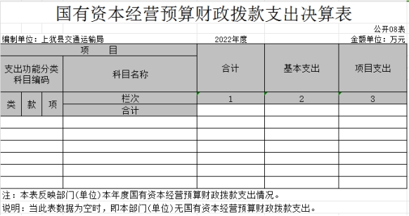 八、國(guó)有資本經(jīng)營(yíng)預(yù)算財(cái)政撥款支出決算表