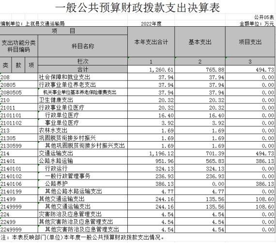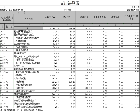 上猶縣交通運(yùn)輸局2022年度部門決算