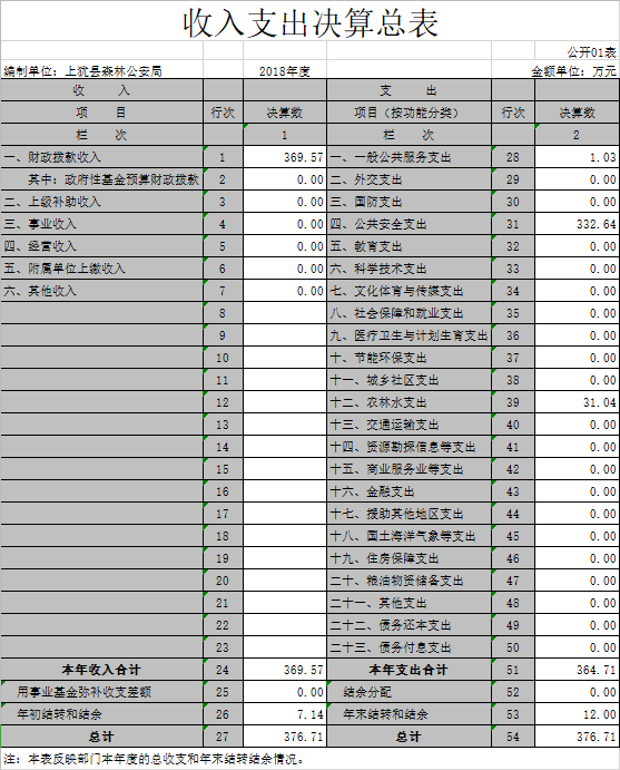 納入本套部門決算匯編范圍的單位共1個,包括:上猶縣森林公安局。