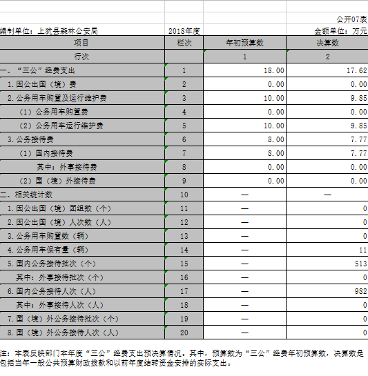 本部門2018年度一般公共預(yù)算財政撥款“三公”經(jīng)費(fèi)支出年初預(yù)算數(shù)為18萬元,決算數(shù)為17.62萬元,完成預(yù)算的98.00%,決算數(shù)較2017年增加2.85萬元,增長19.29 %,其中: