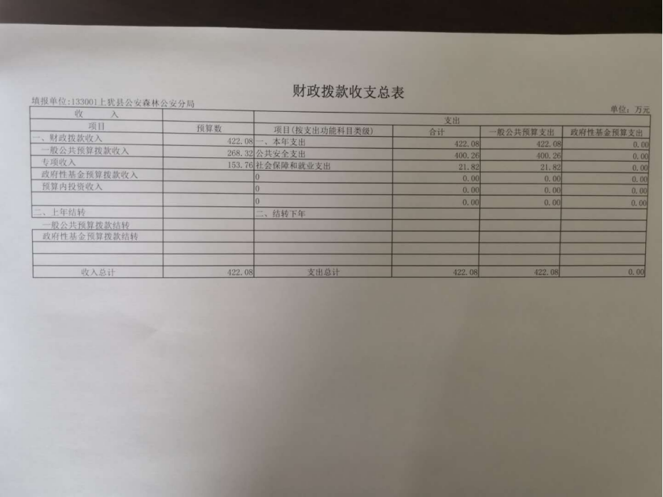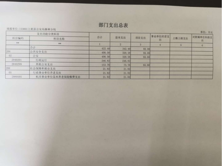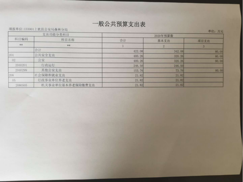 上猶公安局森林分局2020年部門預(yù)算