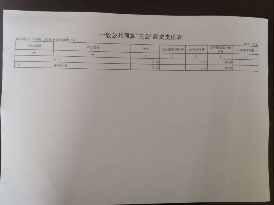 第三部分 上猶縣公安局森林分局2020年部門預(yù)算表