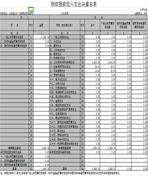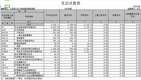 本單位2022年度支出總計2438.71萬元,其中本年支出合計2438.71萬元,較2021年增加750.96萬元,增長45%,主要原因是文化旅游體育和傳媒支出增加;年末結轉和結余0萬元,較2021年增加(減少) 0萬元,增長(下降)0%,主要原因是:本年度收支平衡,無結余。