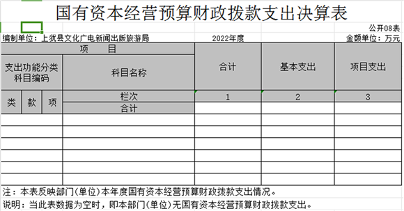 八、國有資本經(jīng)營預算財政撥款支出決算表