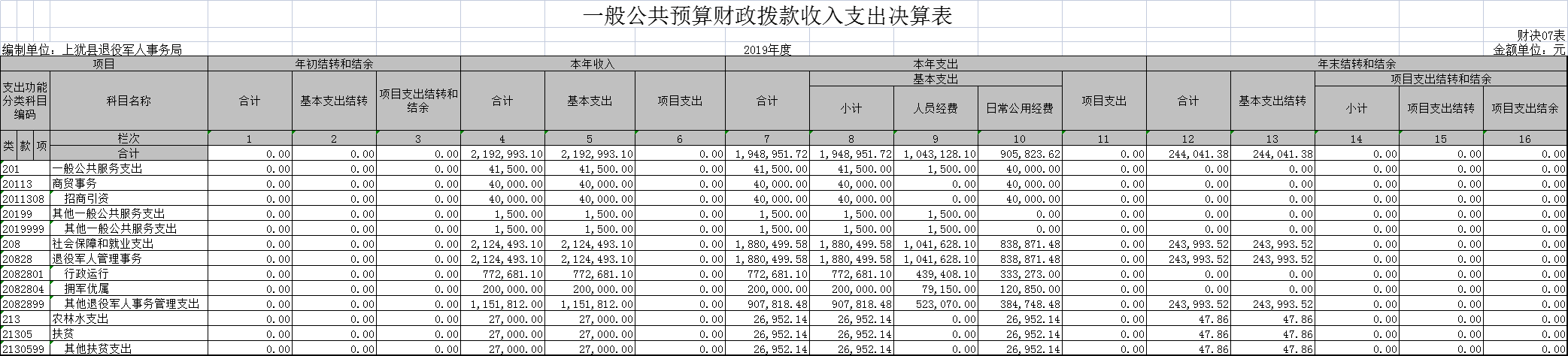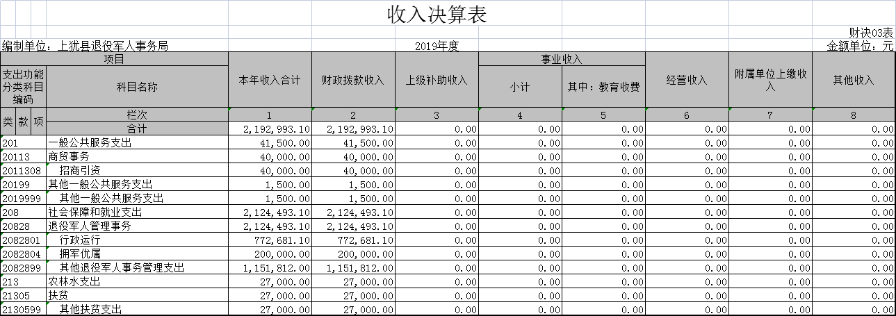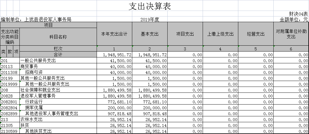 上猶縣退役軍人事務(wù)局2019年度部門決算