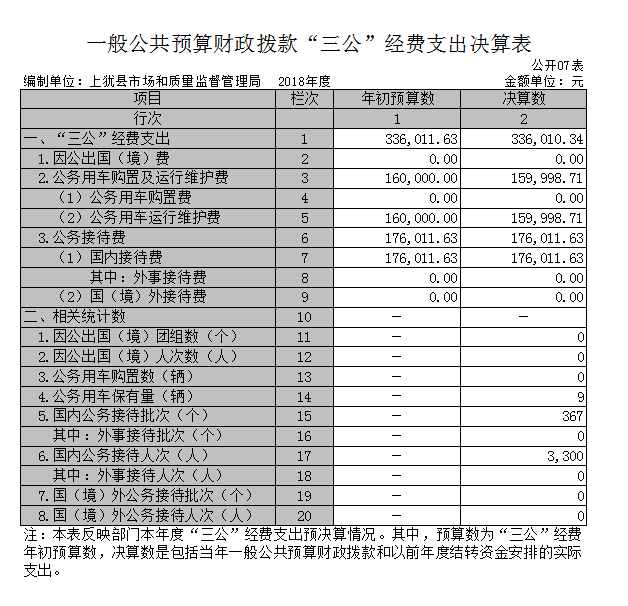 五、“三公”經(jīng)費(fèi):指各部門因公出國(guó)(境)費(fèi)、公務(wù)用車購(gòu)置及運(yùn)行費(fèi)和公務(wù)接待費(fèi)。其中,因公出國(guó)(境)費(fèi)指單位公務(wù)出國(guó)(境)的住宿費(fèi)、旅費(fèi)、伙食補(bǔ)助費(fèi)、雜費(fèi)、培訓(xùn)費(fèi)等支出;公務(wù)用車購(gòu)置及運(yùn)行費(fèi)指單位公務(wù)用車購(gòu)置費(fèi)及租用費(fèi)、燃料費(fèi)、維修費(fèi)、過(guò)路過(guò)橋費(fèi)、保險(xiǎn)費(fèi)、安全獎(jiǎng)勵(lì)費(fèi)用等支出;公務(wù)接待費(fèi)指單位按規(guī)定開支的各類公務(wù)接待(含外賓接待)支出。??