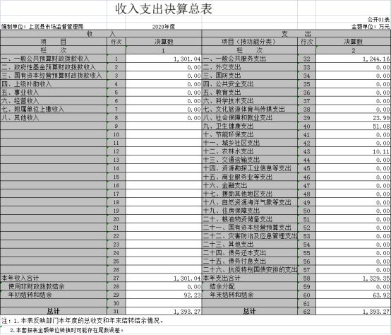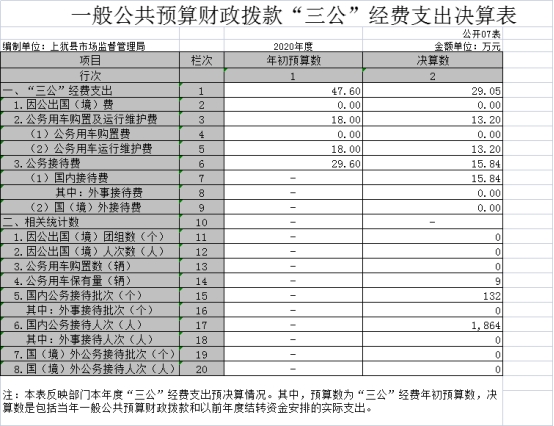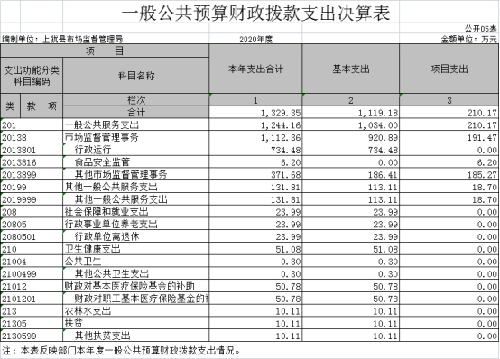 上猶縣市場(chǎng)監(jiān)督管理局2020年度決算公開表