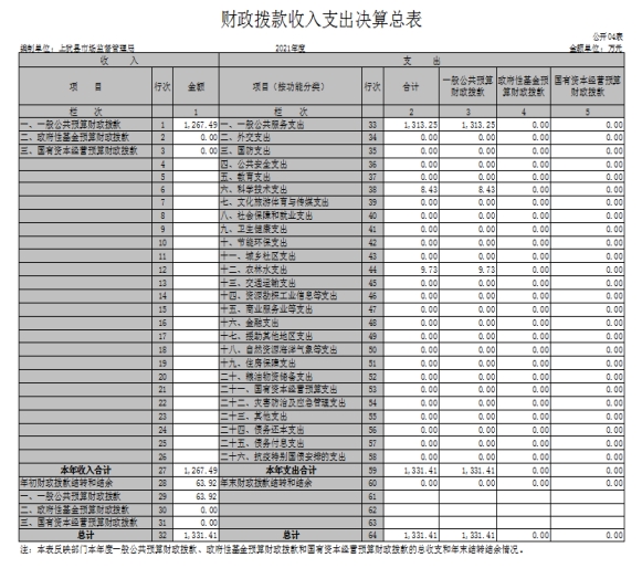 四、財政撥款收入支出決算總表