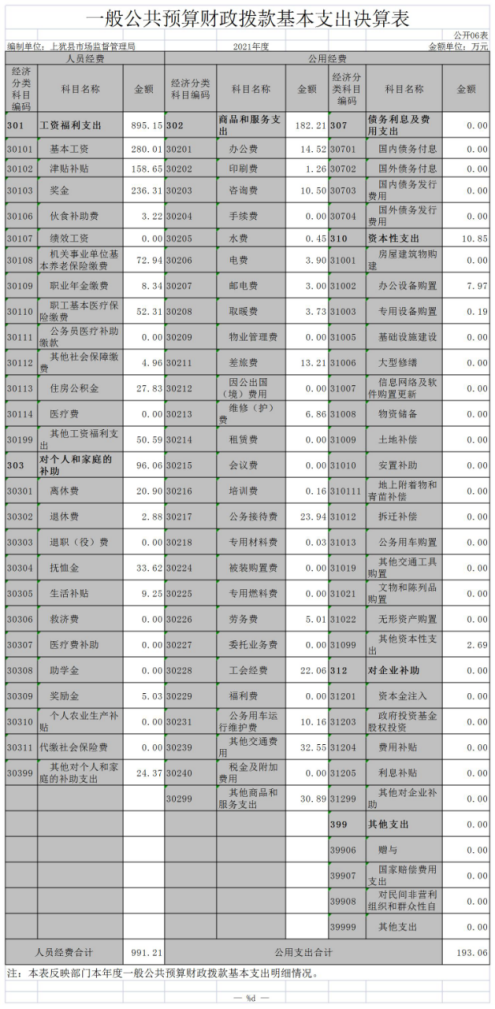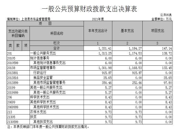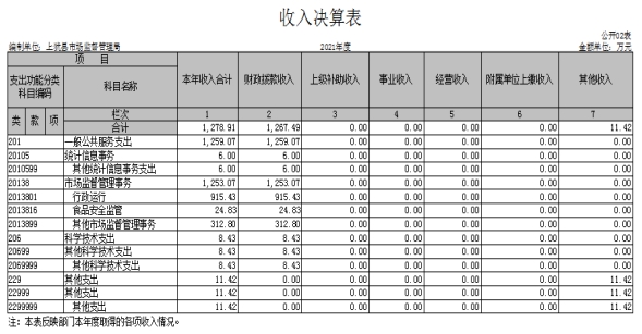上猶縣市場監(jiān)督管理局2021年度決算