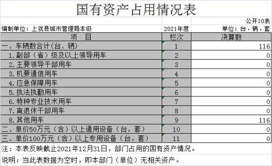 截止2021年12月31日,本單位國有資產(chǎn)占用情況見公開10表《國有資產(chǎn)占用情況表》。其中車輛中的其他用車主要是園林綠化灑水車、路燈作業(yè)車、下水道聯(lián)合疏通車、環(huán)衛(wèi)作業(yè)用車等。