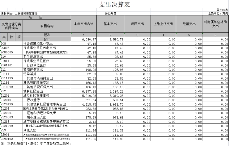 本年支出的具體構(gòu)成為:基本支出 6580.77 萬元,占100 %;項目支出0萬元,占 0 %;經(jīng)營支出0萬元,占0 %;其他支出(對附屬單位補助支出、上繳上級支出) 0 萬元,占 0 %。