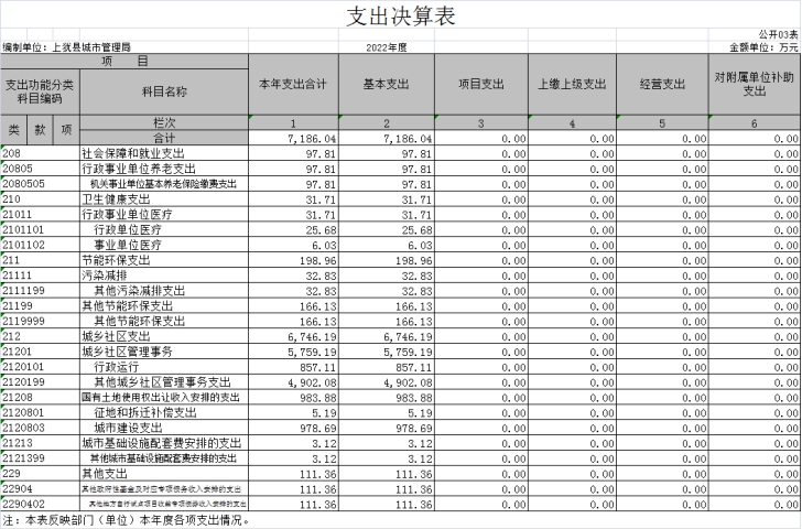 本部門2022年度支出總計7186.04萬元,其中本年支出合計7186.04萬元,較2021年減少640.32萬元,下降8.18 %,主要原因是:城鄉(xiāng)社區(qū)支出減少;年末結(jié)轉(zhuǎn)和結(jié)余0萬元,較2021年增加0萬元,增長0%,主要原因是:按年初預(yù)算執(zhí)行。