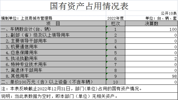 截止2022年12月31日,本部門國有資產(chǎn)占用情況見公開10表《國有資產(chǎn)占用情況表》。