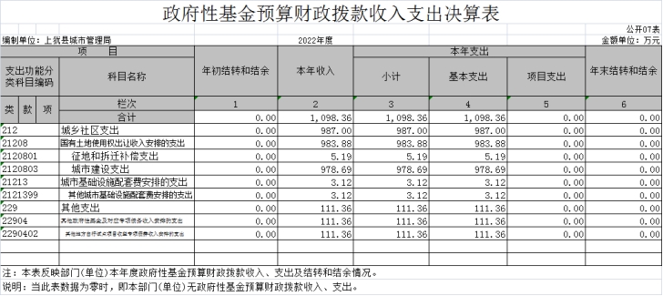 七、政府性基金預(yù)算財政撥款收入支出決算表