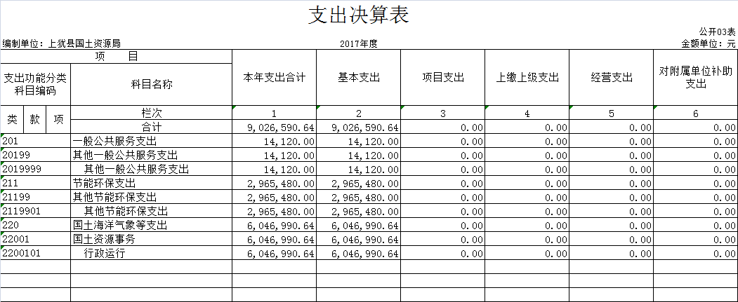 (三)國土海洋氣象等支出年初預算數(shù)為 604.7萬元,決算數(shù)為604.7萬元,完成年初預算的 100%,主要原因是:嚴格按年初預算執(zhí)行。