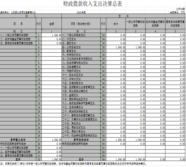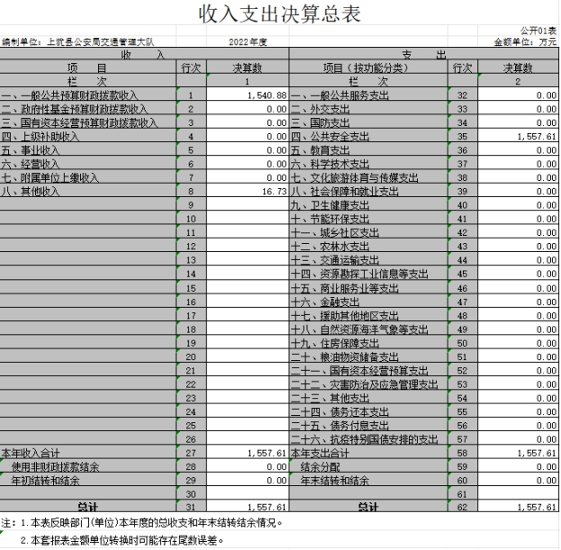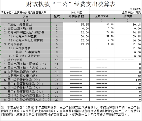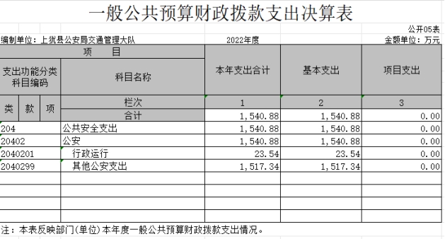 上猶縣公安局交通管理大隊(duì)部門2022年度部門決算