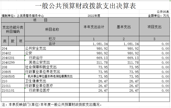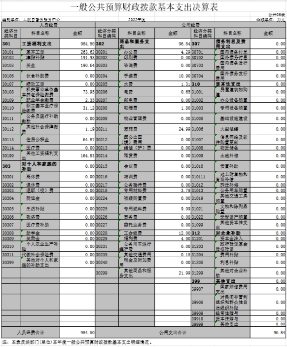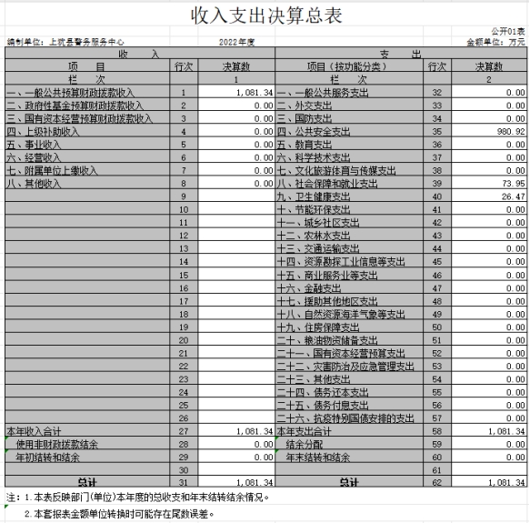 上猶縣警務(wù)服務(wù)中心2022年度決算