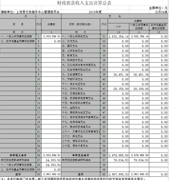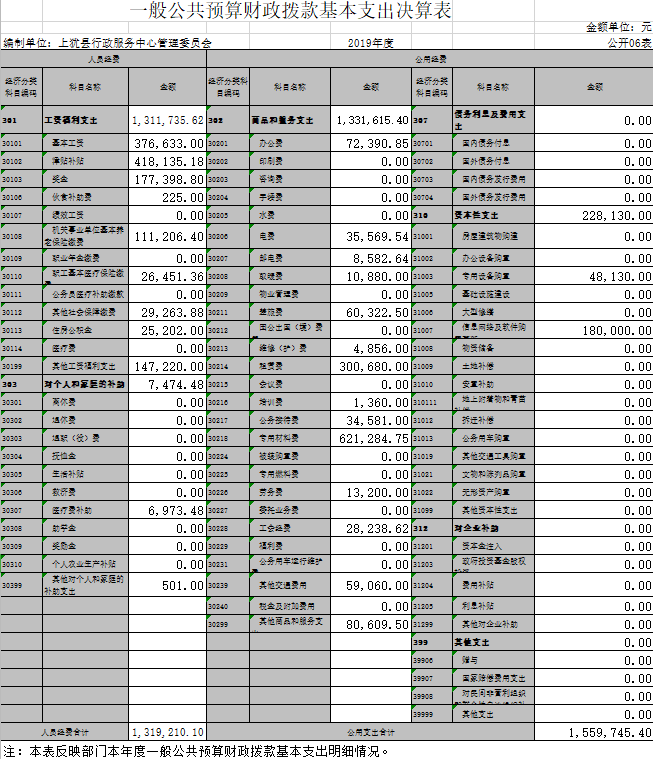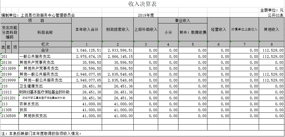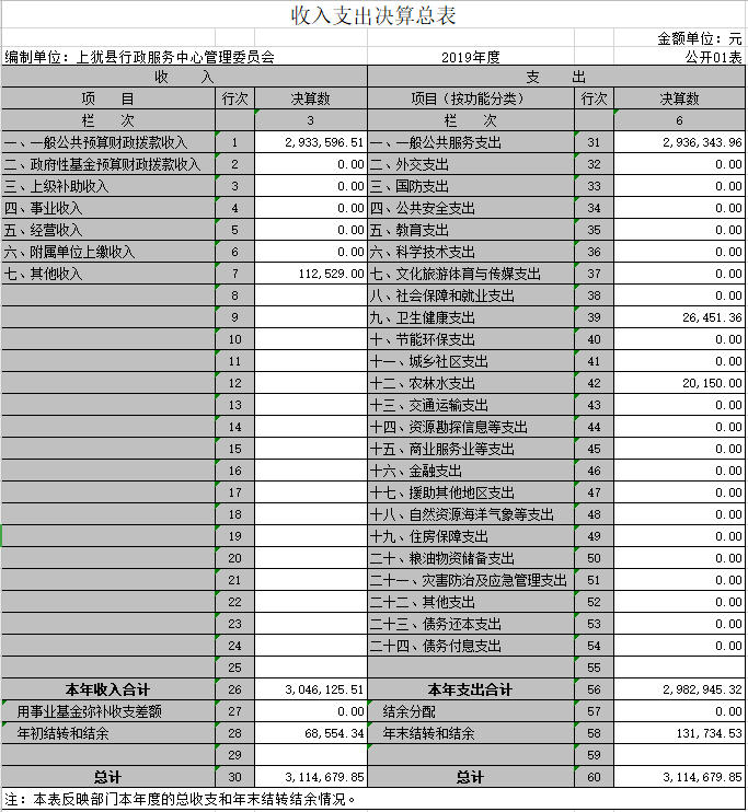 上猶縣行政服務(wù)中心管委會2019年度部門決算
